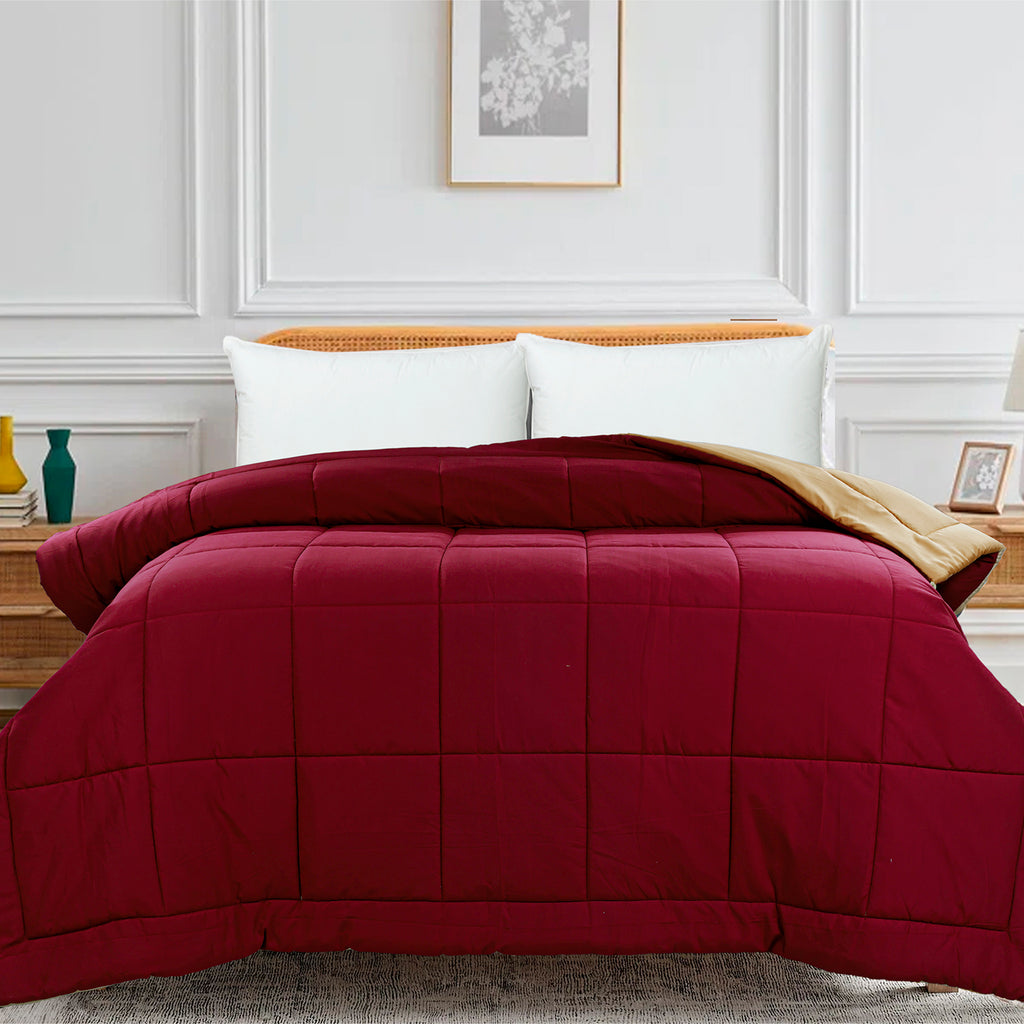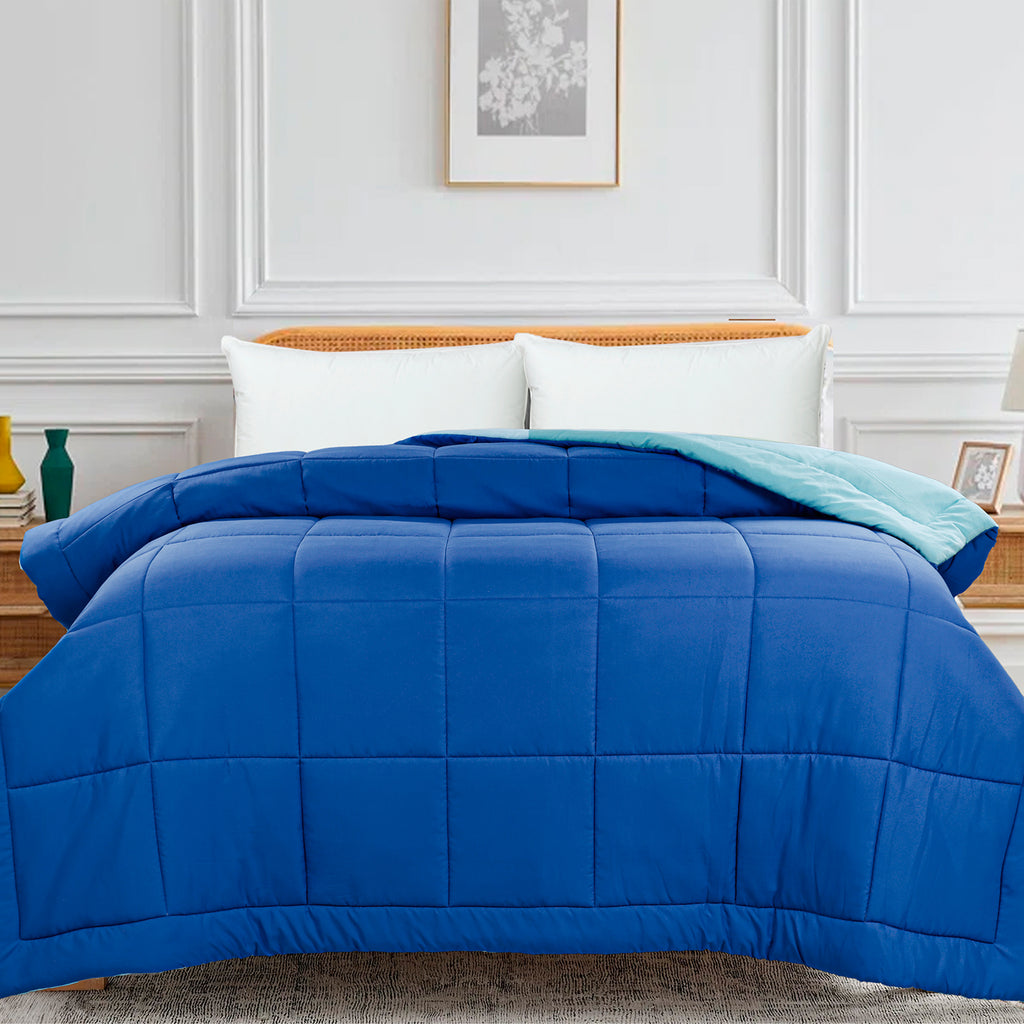 Set Content : Cool Finish Premium Solid Reversible Winter Shield Acute Winter Duvet - 500 GSM Size of Single Duvet : 152 X 229 cm / 60 X 90 Inches Size of King Duvet : 254 X 229 cm / 100 X 90 Inches Size of Super King Duvet : 274 X 229 cm / 108 X 90 Inches Filling : Super Micro Fiber < 0.7 D (Imported) Shell Fabric : Peach Finished Super Micro Fabric (Imported)
