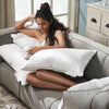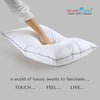 Experience the soft resilience ALL GOOSE DOWN. Uniquely yours-fluff this pillow into different positions to obtain just the softness and support you desire, the comfort you deserve. Imagine silky softness shaped to your cheeks and nestle and dream in a sensuous heaven. Indulge yourself and your loved ones. Our sumptuous pillows may keep you from getting out of bed in the morning.